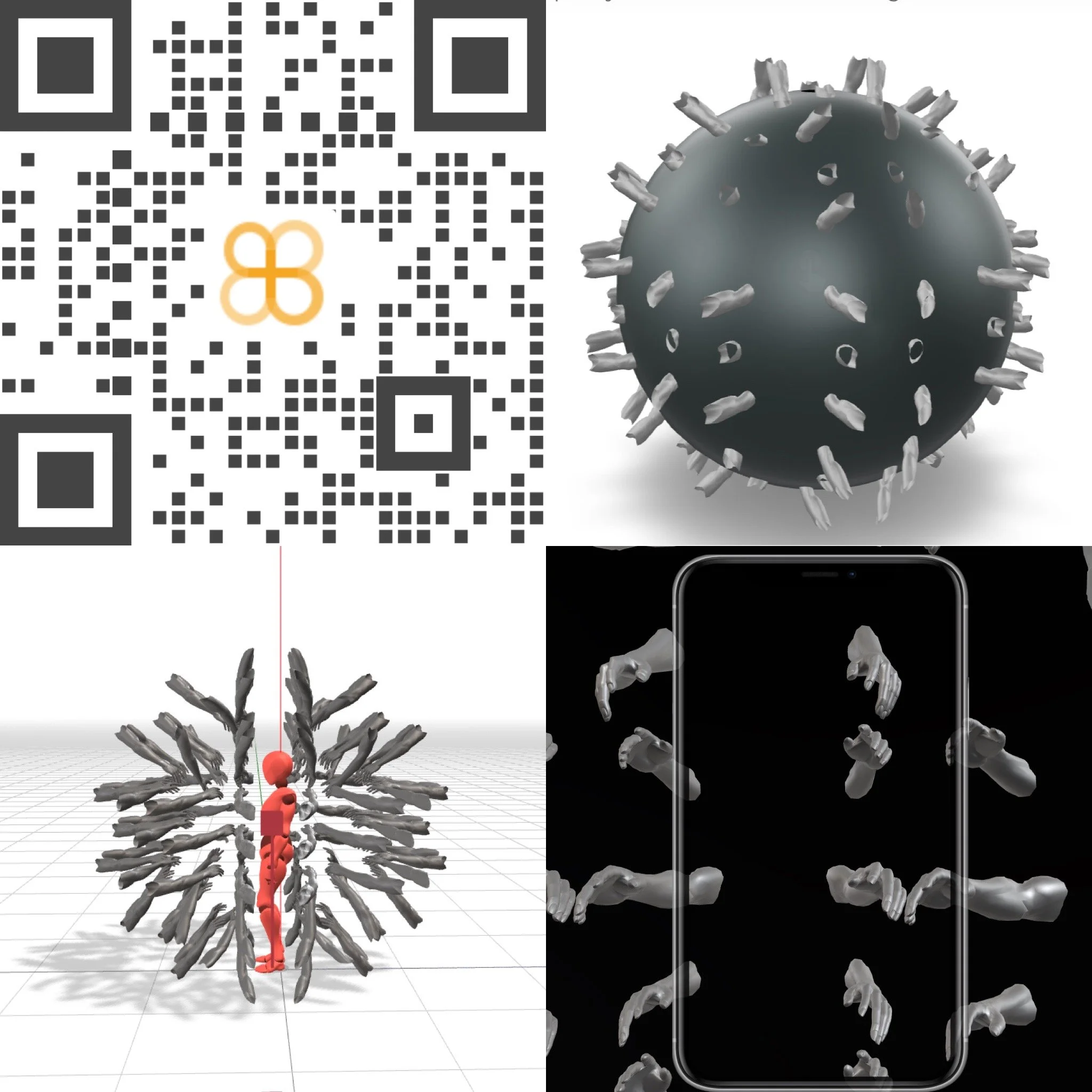Overwhelmed, 2024. Description: A virtual experience immersing the viewer in a shifting landscape of extended arms, engulfed in the darkness of an unseen virus. As the user moves in the space, the sense of isolation, vulnerability, and unseen contagion deepens, evoking the struggle for connection and survival in a destabilized world.. AR Platform: Hoverlay. Required Software: iOS or Android.